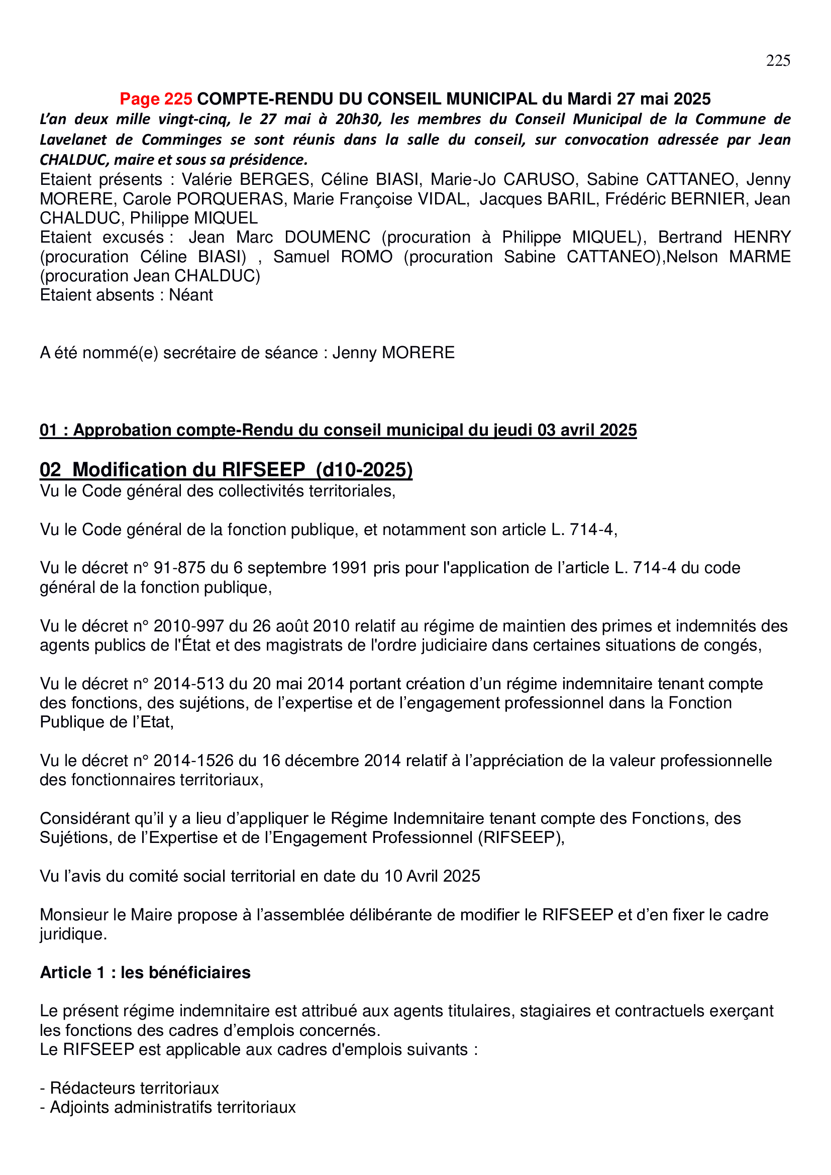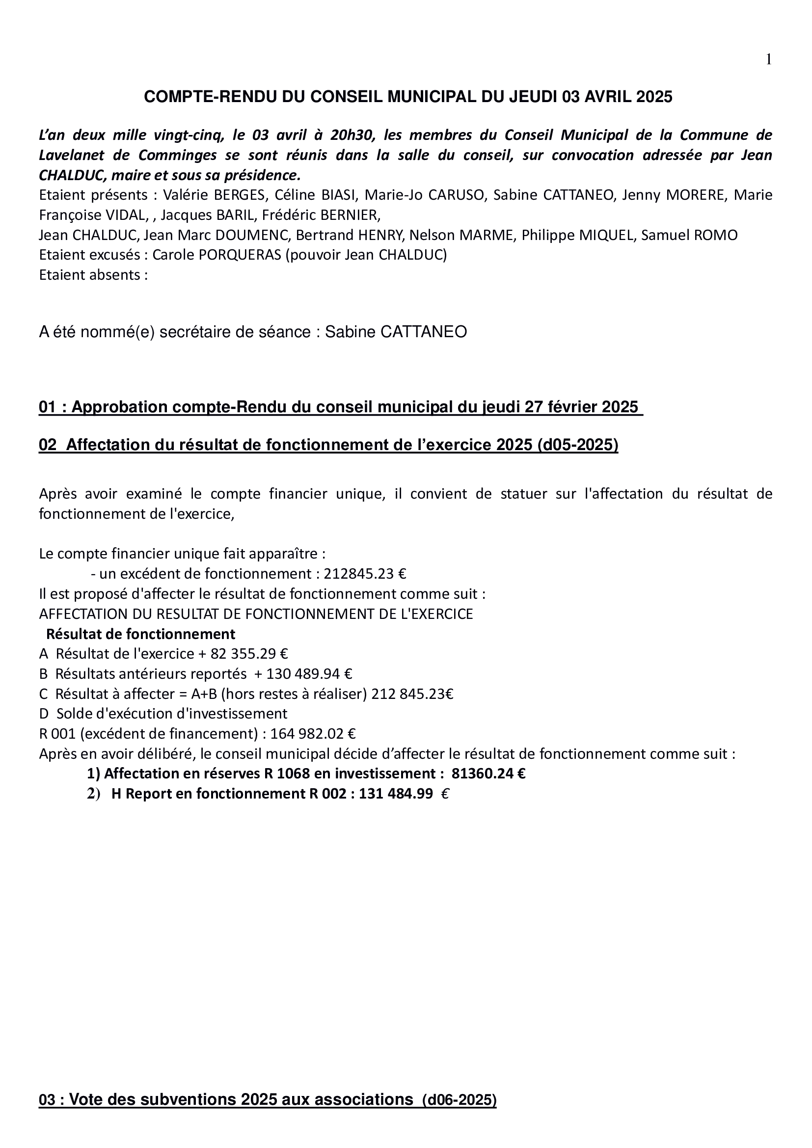 Comptes rendus du Conseil Municipal 2025 :